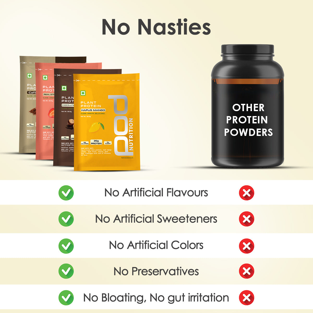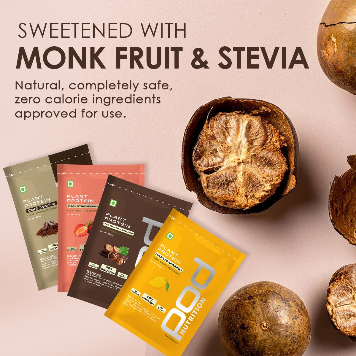 Never. We don’t use sucralose, aspartame, maltitol or any artificial sweeteners or flavours. What you get is clean protein, naturally sweetened with real ingredients— monk fruit and stevia; no junk, no weird aftertaste.