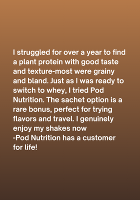 Pod isnaturally easy on the gut—no dairy, no soy, no gluten, no artificial sweeteners, and no heavy metals. Many people experience bloating or discomfort from the above mentioned nasties, but we keep it clean and light. The result? A shake that digests smoothly and feels great from the inside out.