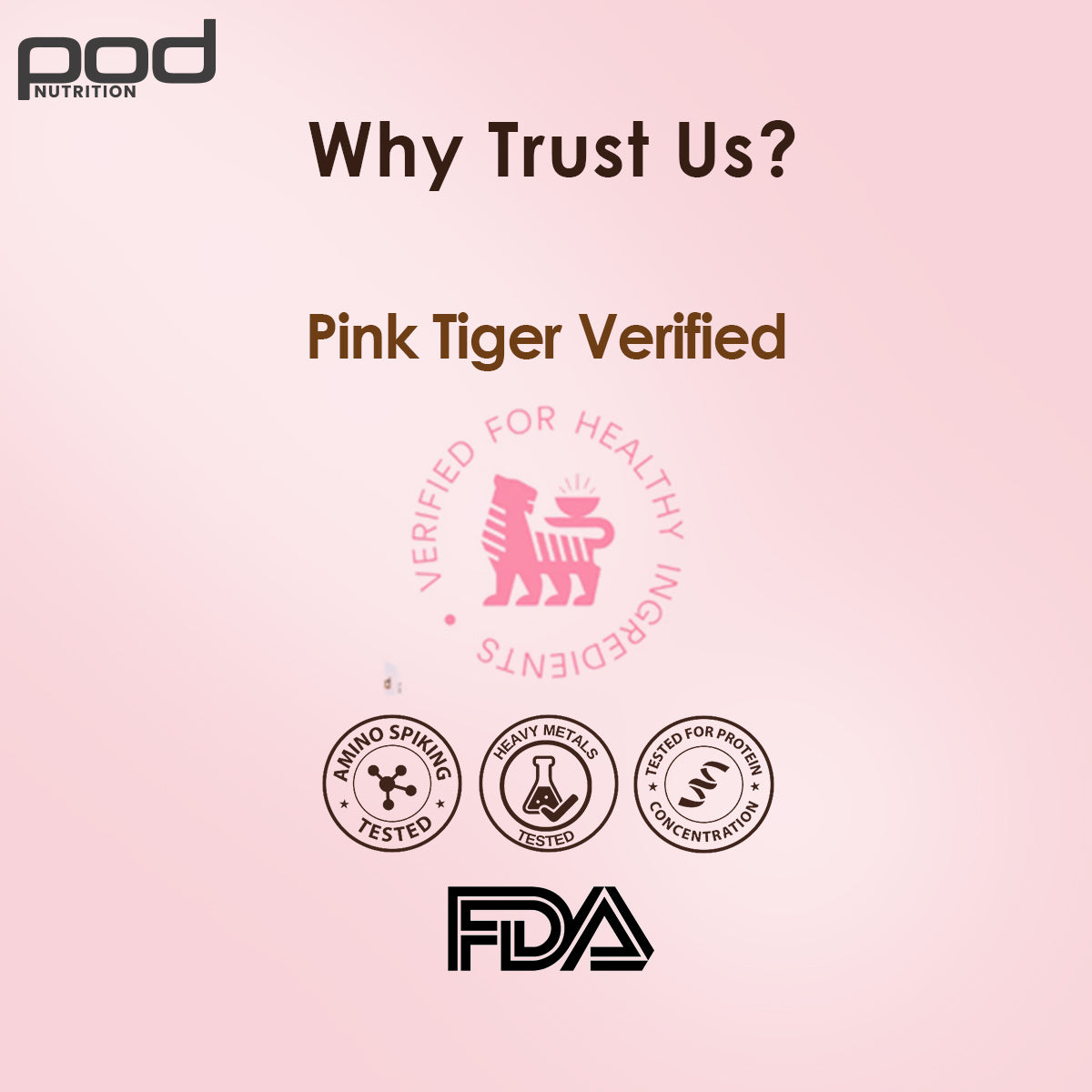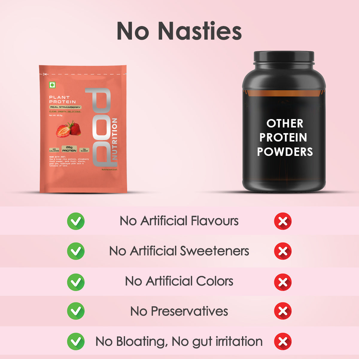Pod isnaturally easy on the gut—no dairy, no soy, no gluten, no artificial sweeteners, and no heavy metals. Many people experience bloating or discomfort from the above mentioned nasties, but we keep it clean and light. The result? A shake that digests smoothly and feels great from the inside out.